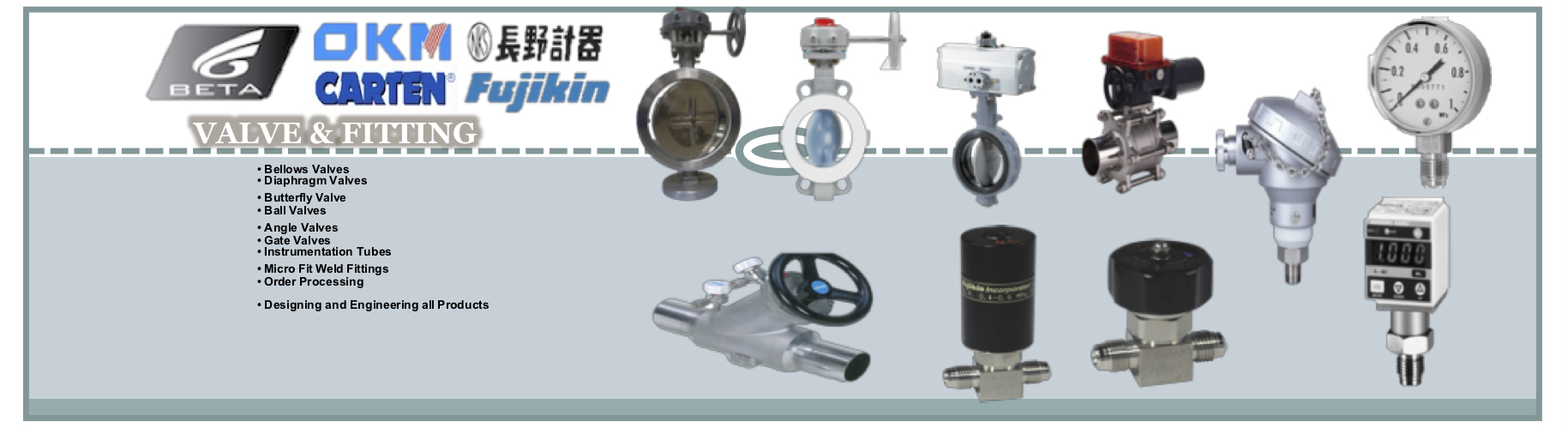 高純不銹鋼EP、BA/MP、AP等級(jí)管子/管道/管件;高純不銹鋼隔膜閥、波紋管閥、蝶閥、球閥、針閥、調(diào)壓閥等等;超純VCR、焊接、卡套接頭;以及設(shè)備應(yīng)用材料:壓力傳感器、壓力表、鋼瓶電子稱(chēng)、火焰探測(cè)器、氣體探測(cè)器、鋼瓶緊急切斷裝置、加熱毯、加熱線(xiàn)、PTFE保溫纏繞帶;化學(xué)品供應(yīng)系統(tǒng)中的PFA閥門(mén)以及括口和焊接接頭,不銹鋼內(nèi)襯PFA/PTFE管道、閥門(mén)、接頭等配件。